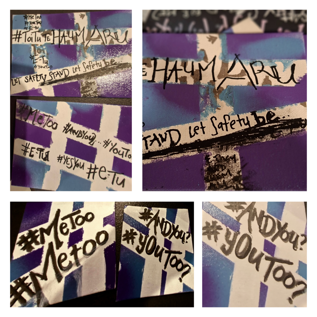 These artworks were inspired by two campaigns, The Toitu Te Tiriti movement in Aotearoa 2024 and the #MeToo campaign started by Tarana Burke in 2006 in America for survivors of abuse. Toitu te haumaru means – let safety remain upstanding. I believe our tupuna originally signed Te Tiriti O waitangi with the brittish crown for […]