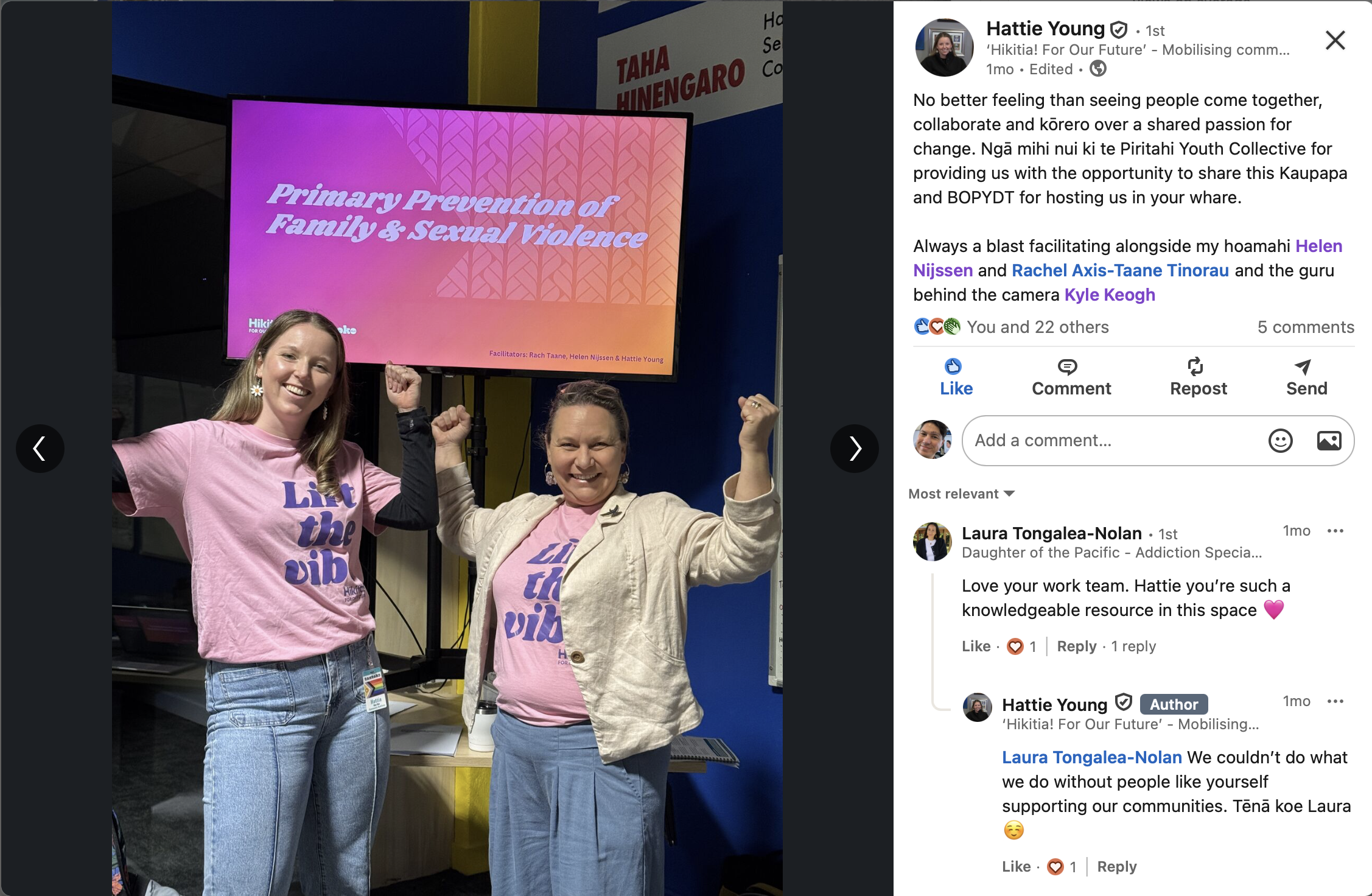 Through digital storytelling, we amplify local voices already leading prevention. Sharing their mahi online makes community action visible, strengthens connection, and helps grow collective understanding of how everyday efforts contribute to lasting change in preventing sexual and family harm.